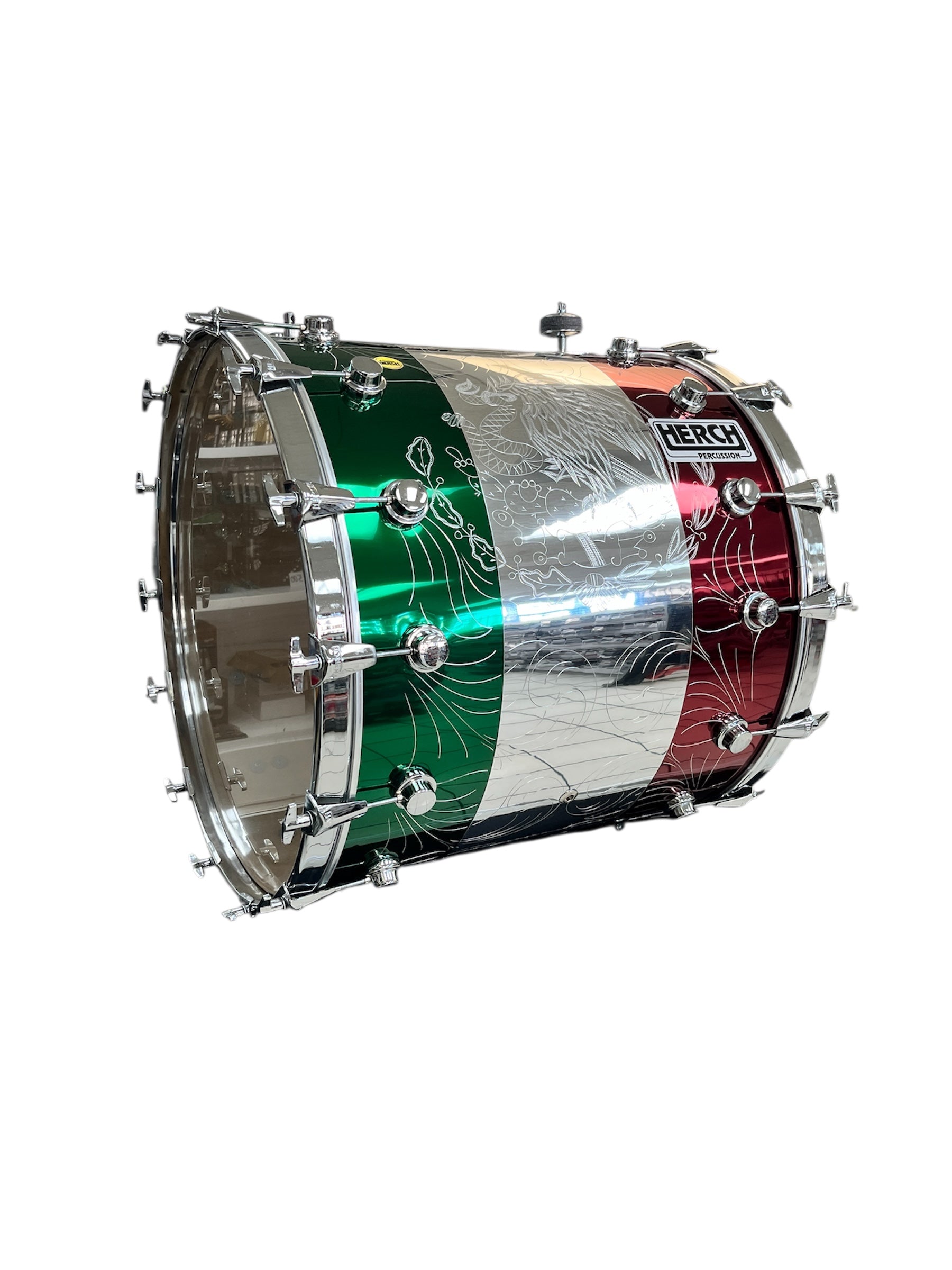 Herch Tambora is one of most popular bass drums for banda music, ideal for Mexican Bandas. This professional Tambora is a 24x 24" bass drum that includes a cymbal mount. This professional Banda Tambora is ideal for the traditional Mexican Banda music, Mexican Banda Sinaloense, Tamborazo Zacatecano, Norteno or Duranguense music. Built with the highest quality materials Herch Tambora is hand made in Guadalajara Jalisco. From quality Bass Drum work in the stage to delivering a formidable recording sound, this Tambora hits all the right tones needed when performing. Features 24” x 24" Bass Drum Tambora Size, 12 Chrome Lugs, Cymbal Mount.
